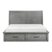 The transitional framing of the Logandale Collection allows for versatile placement within a number of classic bedroom decors, making a perfect choice for your home. An antique gray finish is utilized over mango veneer for subtle highlighting of its distinct grain. A total of 6 drawer units are located on the side rails and footboard of the queen size bed creating additional storage space within your bedroom. The sleigh headboard is paired with a platform footboard resulting in an unfettered design. Dark finished metal knob and pull hardware front each drawer creating a complementing accent to the drawer fronts.