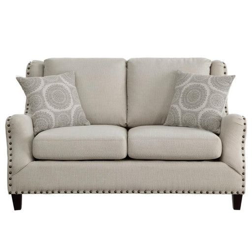 The retro-modern design that defines the Renzo Collection is a pairing perfect for your home’s living room. Beige top-grain leather covers the bo...
