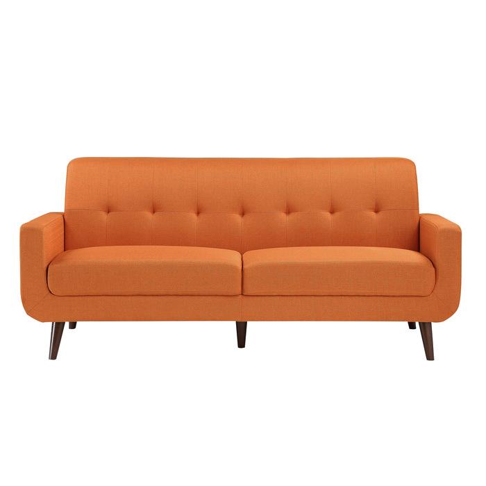 Mid-Century modern design is the inspiration for the Fitch Collection. Wide, dramatically curved arms rise to the straight back that is synonymous with this classic style. Contoured stitching on the seatback lends further accent to the sofa's modern profile. The Fitch Collection is offered in orange fabric, creating a neutral palette to inspire your decorative whim.