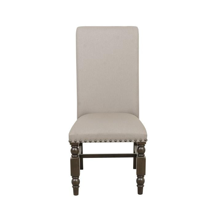 A classic look for your traditional home, the Reid Collection offers an updated country style that will be a warm and inviting addition to your dining space. A cherry finish graces the wood veneer of the dining chairs, which feature nailhead accent, neutral tone fabric and turned legs. 20 x 26 x 41H