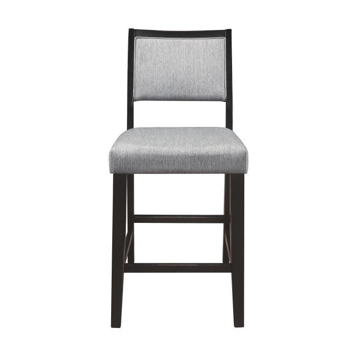 The transitional look of the Stratus Collection presents convenient storage and stylistic versatility as a perfect platform for your casual dining room. The wood-framed counter height chair’s seat and back is covered in gray fabric upholstery, complementing the black finish of the wood frame. 19.5 x 22.5 x 39.5H