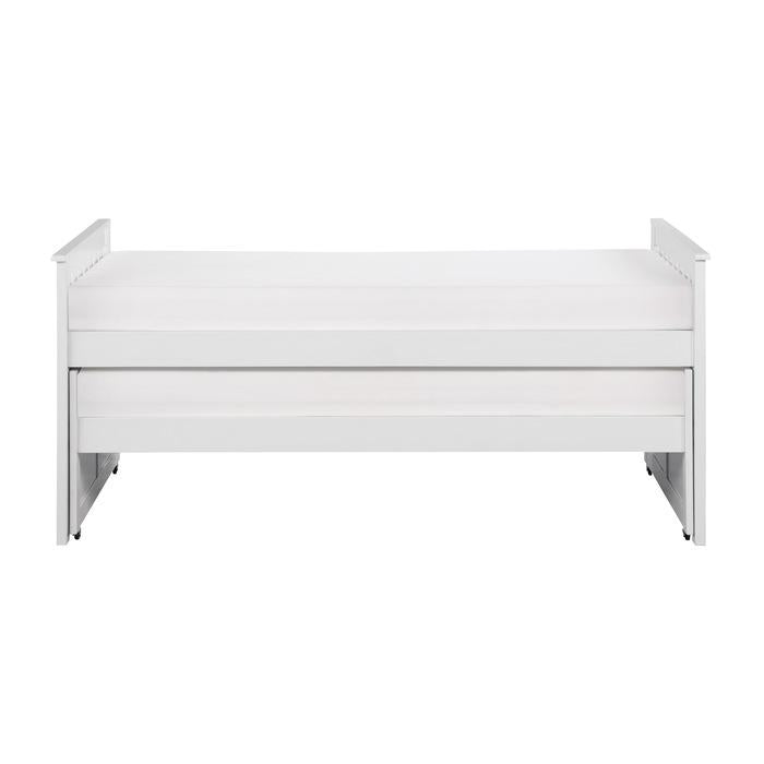Maximizing sleep space is achieved with the stylish Galen Collection. This transitional twin over twin bed is featured in a white finish making it an appropriate choice for a number of youth bedroom settings. 1st Twin: 42.5 x 81.5 x 35.5H, 2nd Twin: 41.5 x 77 x 21H