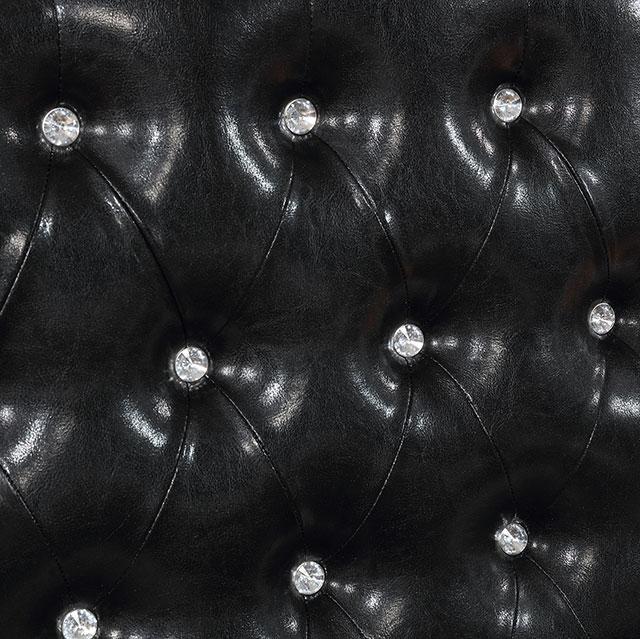 Brighten your bedroom with the glamor and glitz of this elegant bedroom set! Stylish button tufts decorate the padded leatherette headboard, bringing extra definition to each piece while accentuating the thick wood frame. Beautiful mirrored accent panels enhance the visual appeal of the casegood design while the turned bun feet provide sturdy support that adds a sophisticated touch to this set's chic contemporary elements.