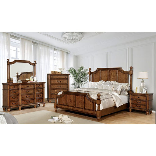 Classic, almost farmhouse, in its appearance, this bedroom collection showcases how even natural tones can pop out in a room. The paneled bed is he...