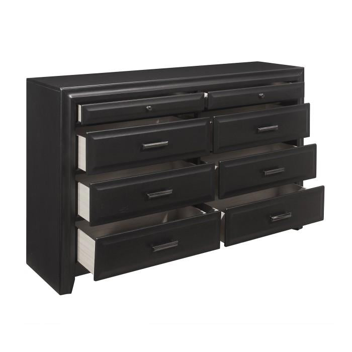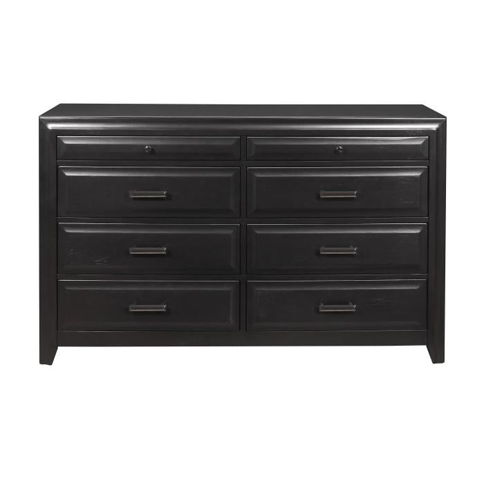 The soft modern styling of the Cordelia Collection creates a look that is a perfect fit for your bedroom. Black bar hardware play subtly against the espresso finish that graces the okume veneer of the dresser. 61 x 16.5 x 37.5H