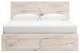 A fresh take on country living, this king panel storage bed strikes the perfect balance between farmhouse and contemporary. Its rustic white finish and replicated reclaimed oak grain merge effortlessly with the hearty, clean-lined look we love today. Six storage drawers help you keep clothes organized and put clutter in its place. You’ll love how this bed's simple design transforms your bedroom into a harmonious haven.