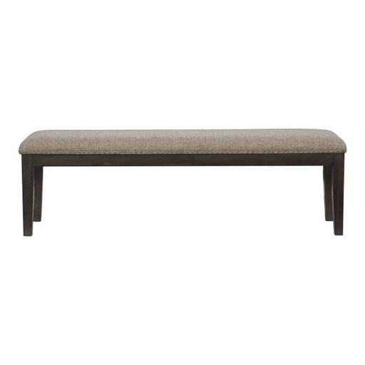 This bench is upholstered in a dark gray fabric with a nailhead trim. The padded seating makes for a comfortable seat. Aesthetically this bench set...