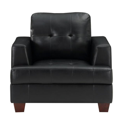 The classic transitional styling of the Jarita Collection creates a look that is perfect for your casual living space. Offered in black faux leathe...
