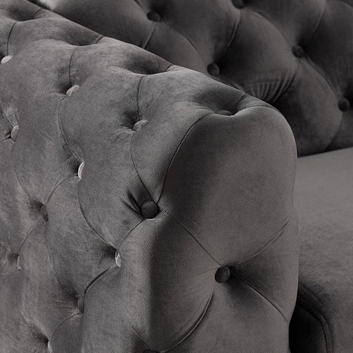 SAPPHIRA Chair, Dark Gray, 43"L X 35 1/2"W X 27"H (SEAT HT: 19", SEAT DP: 24"), 79.9lbs. Take a look at this plush chair and imagine sinking into t...