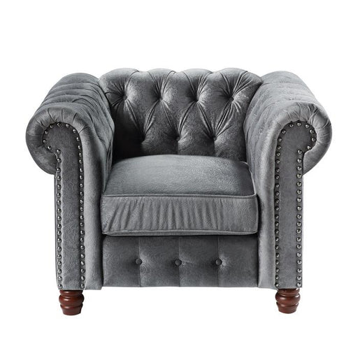 The iconic style of the Welwyn Collection exemplifies the timeless look of traditional design. This Chesterfield-style chair is covered in dark gra...