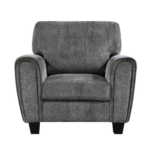 The sleek profile of the Keighly Collection will be the perfect complement to your modern living room. The chair features a dark gray fabric cover ...