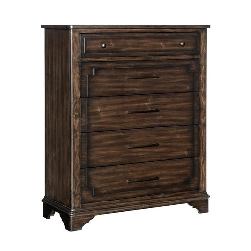 Product DescriptionMaximize your bedroom's storage with this elegantly proportioned 5-drawer chest, featuring a timeless wire-brushed antique brown...