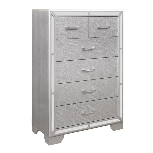 Elegant touches abound with the design of the Aveline Collection. Alligator embossed veneer covers the collection and is finished in silver, an ele...