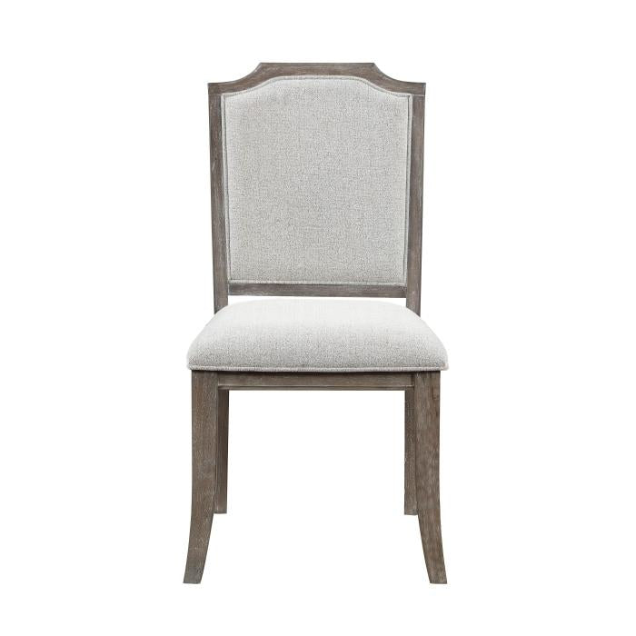 Traditional elements are paired in the design of the Garner Collection, the result - an elegant arrangement for your home’s casual dining room. A brown-gray finish highlights the distinct grain of the collection’s oak veneer, its hue creating a versatile pallet for your home's décor. Moonstone chenille fabric upholstery covers the seats and backs of the classic wood-framed side chairs. 20 x 25.5 x 41H
