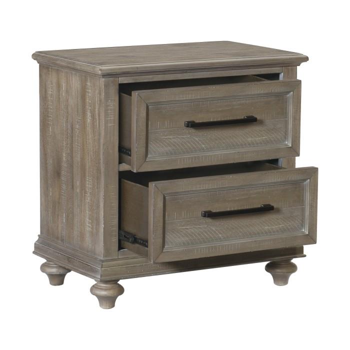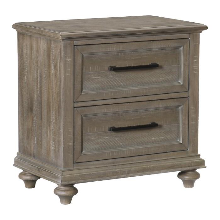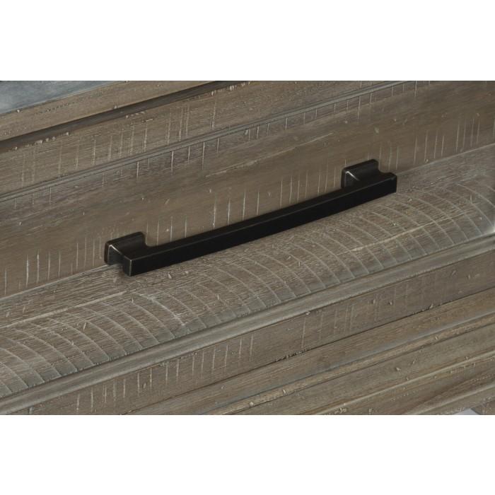 The solid transitional styling of the Cardano Collection creates an impactful design presence in your home. Utilizing distinct accent techniques – plank effect, rasping, saw marks – and pairing them with traditional framing and a rich finish – driftwood charcoal over acacia veneers – creates nightstand that is a perfect fit for your bedroom. Pewter finished hardware provides a subtle contrast to the wood’s dark finish.