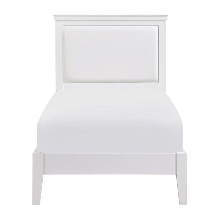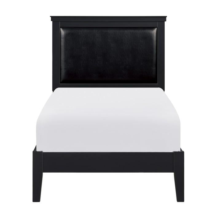 Merging traditional and transitional design creates the look of the Seabright collection, providing a unique platform from which to style your bedroom. The black painted finish allows for exceptional versatility of placement and decorative inspiration. The twin bed features framed, color-coordinated, faux leather padded headboard insert and an ultra-low-profile footboard.