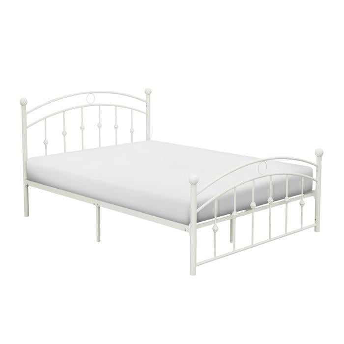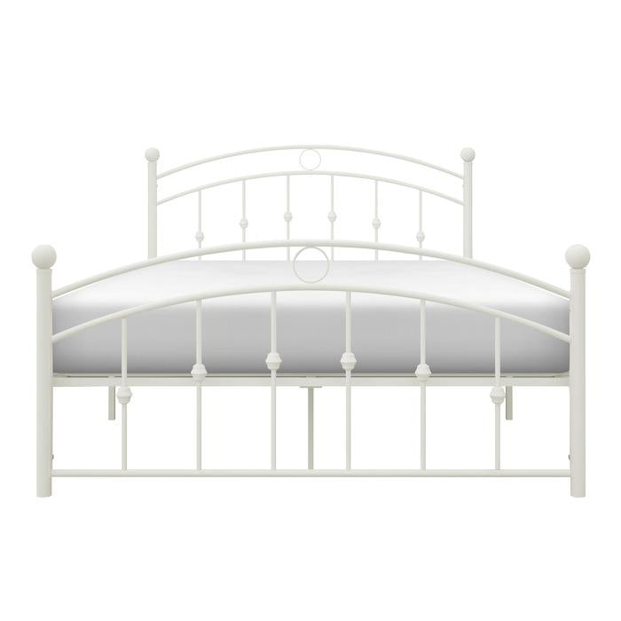 The arched panels of the full size headboard and footboard create eye-catching drama in the Tiana Collection. The white finish along with ball finials and the circle motif - that centers the headboard and footboard – all lend to the traditional look of the collection. Twin bed size option is also available.