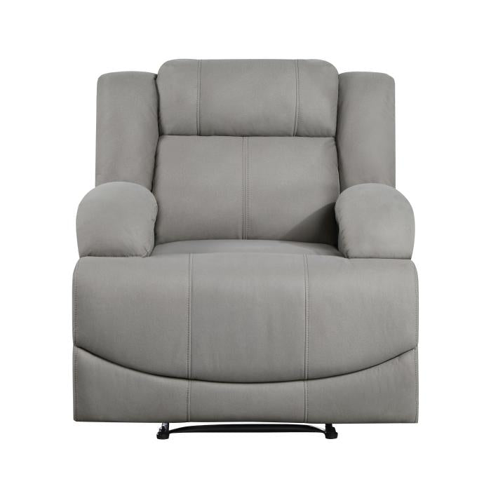 Complementing your living room’s transitional style is the Camryn Collection. The manual motion mechanism of the chair allows for ease of motion when going from seated to reclined. Contoured stitching defines the seating of the group while the gray-hued polished microfiber upholstery that covers the collection is a subtle pop of color for your living room’s décor. 36 x 36.5 x 40.5H