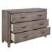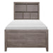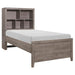 Industrial design is subtly used to achieve a cool look for your bedroom in the Woodrow Collection. Dark metal hardware and corner banding with rivet look lend to the casual look of this bedroom group. Melamine laminate features a weathered-wood look that furthers the intended design. The bookcase headboard provides ample space for your bedside storage needs. Further functionality comes in the form of an optional tower night stand and under-bed toy boxes.