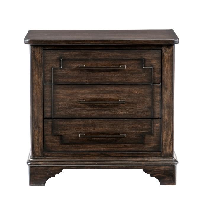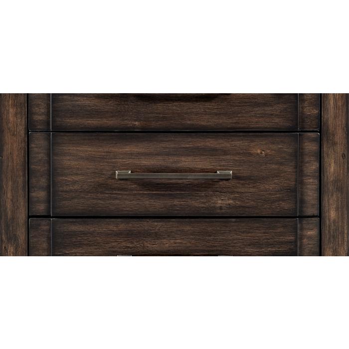 The rustic brown finish over acacia veneer solidifies the rusticated design of the Boone Collection, its rugged aesthetic and traditional lines creating a versatile addition to your transitionally styled bedroom. Dark bronze-finished bar hardware fronts the drawers of the nightstand, their wide profile and earthy hue providing complementing accent to the framed case piece. 30 x 17 x 29.5H