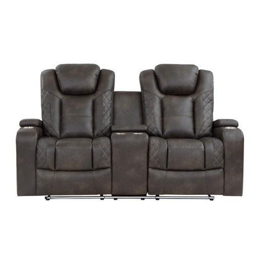 9211BRG-2PWH - Power Double Reclining Love Seat with Center Console, Power Headrests, Storage Arms and Cup Holders