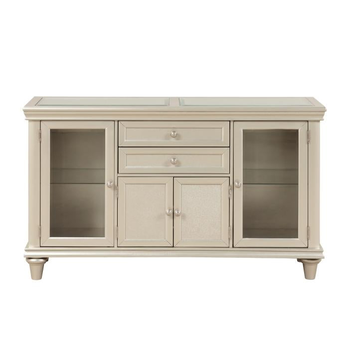 • 2 Side cabinets with glass doors , each with 1 adjustable glass shelf