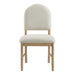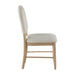 Add a touch of rustic elegance to your dining space with this beautifully crafted upholstered dining side chair. Featuring a solid wood frame with a wire-brushed power glaze natural finish, this chair highlights the wood's natural texture and grain. The comfortable beige textured fabric upholstered back and seat cushion provide a cozy and inviting seating experience. Designed for both style and durability, this chair supports up to 250lbs, making it a reliable choice for everyday use. Its versatile design and neutral color palette effortlessly blend with various interior styles, making it a perfect addition to your dining room or kitchen.