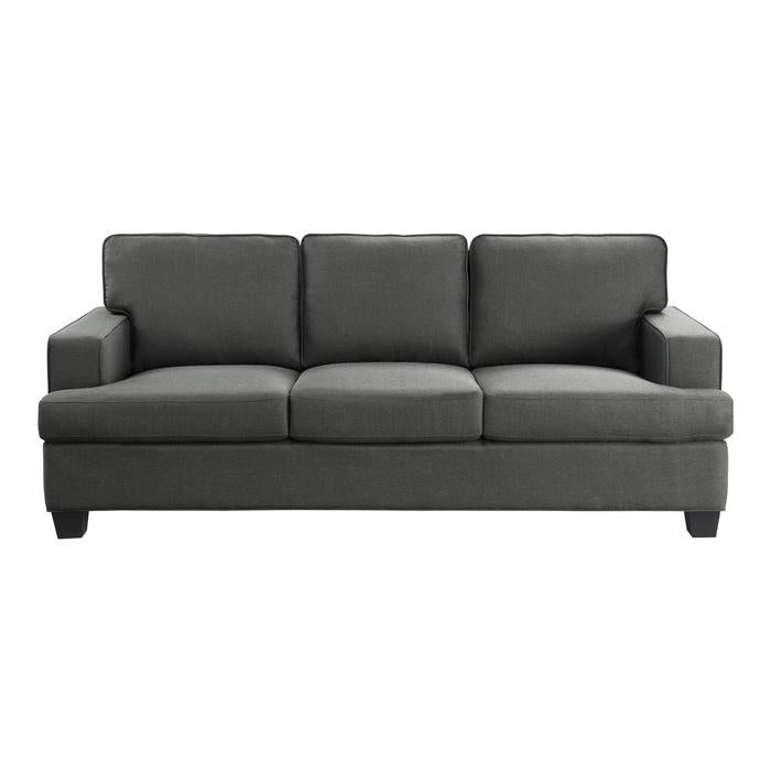 Designed for perfect placement in myriad decorative home settings, the Elmont Collection pairs clean lines with plush seating to create a versatile option for your living room. The transitional styling of the sofa features a charcoal textured fabric covering, track arms and loose back cushions.